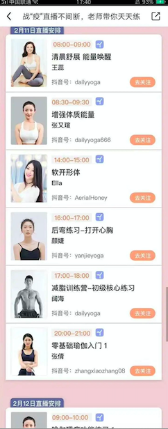 晨练课、下午课、晚间课……从周一到周六,从早到晚,直播时间非常紧凑。