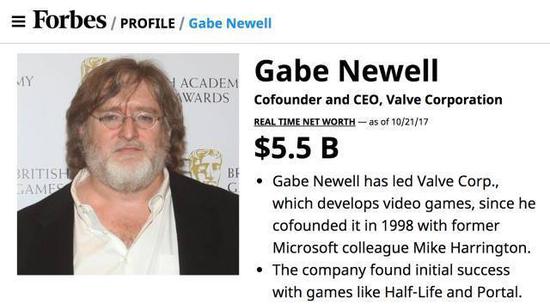 巧的是,《福布斯》同年的百大富豪榜上,G胖以 55 亿美元身家位列第 97 名,跻身全美百大富豪之列,成为榜单里唯一的电子游戏(Video Games)从业者。