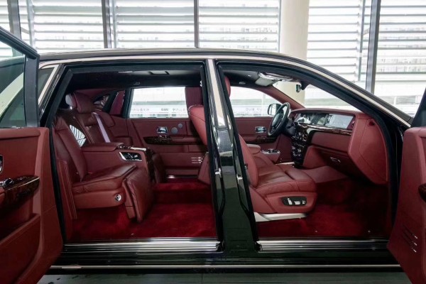 幻影加长版:长宽高5990-2018-1656,轴距3772,后备箱容量548升,车身重量2745KG,6.8L-V12发动机563匹马力900扭矩,最高车速250公里,百公里加速5.4秒,百公里油耗14.5L这个堪称业内经典的豪华车型,拥有都是金字塔顶端的实力悍将。必将为您