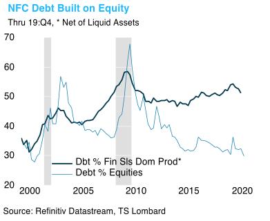 在过去十年,很多企业在低利率的环境和美联储几轮量化宽松的政策下,通过发行债券来回购股票,导致企业杠杆率抬高。这就意味着当经济衰退,企业的现金流变得很脆弱,因而面临更大的信用风险。