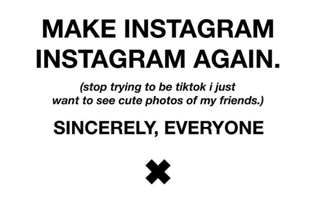 7月,以金·卡戴珊为首的网红发起了一场抗议运动,要求Meta不要盲目抄袭TikTok。一次大更新中,Meta将Ins首页修改成全屏视频,并用推荐内容取代订阅内容,就像TikTok那样。“我们再也刷不到关注朋友的帖子了”,很多人哀叹道[5]。