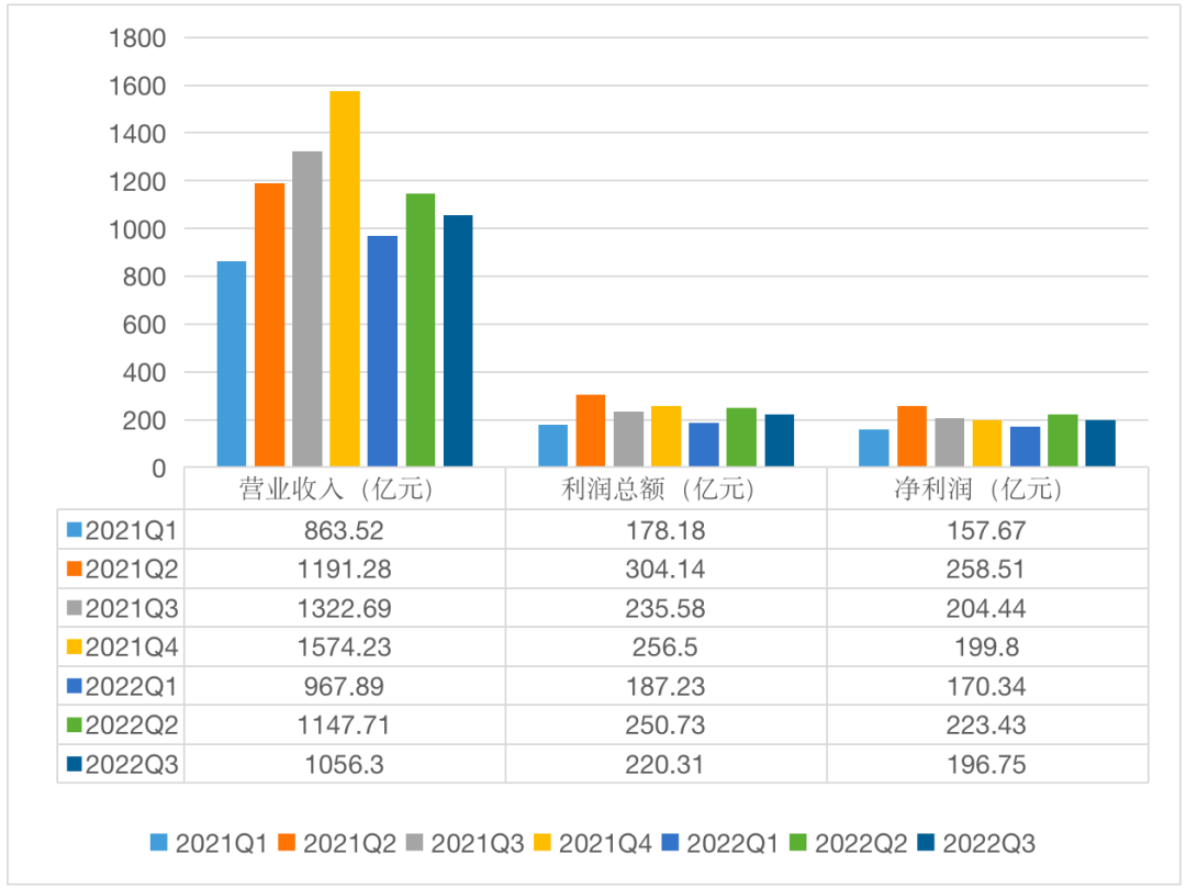 但是招商局集团2022年业绩却出现同比下滑。据财报显示,2022年前三季度,招商局集团的营业总收入为3171.91亿元,较上年同期减少了202.58亿元。其中主营业务收入2866.3亿元,较上年同期减少214.5亿元。利润总额为658.27亿元,比上年同期减少59.63亿元。净利润为590.52亿元,较上年同期减少了30.01亿元。