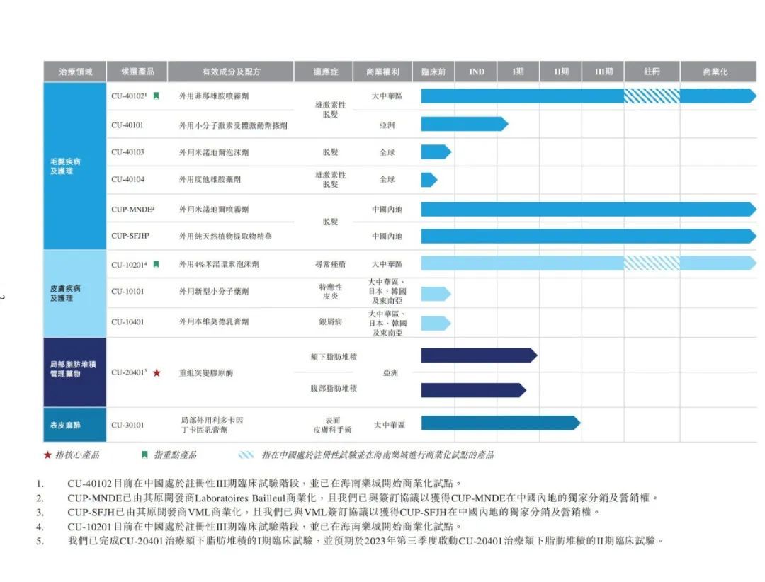 科笛集团的最大看点在于CU-40102能否顺利获批。这款外用非那雄胺是外用药,可能会成为新的热门消费级防脱药物。