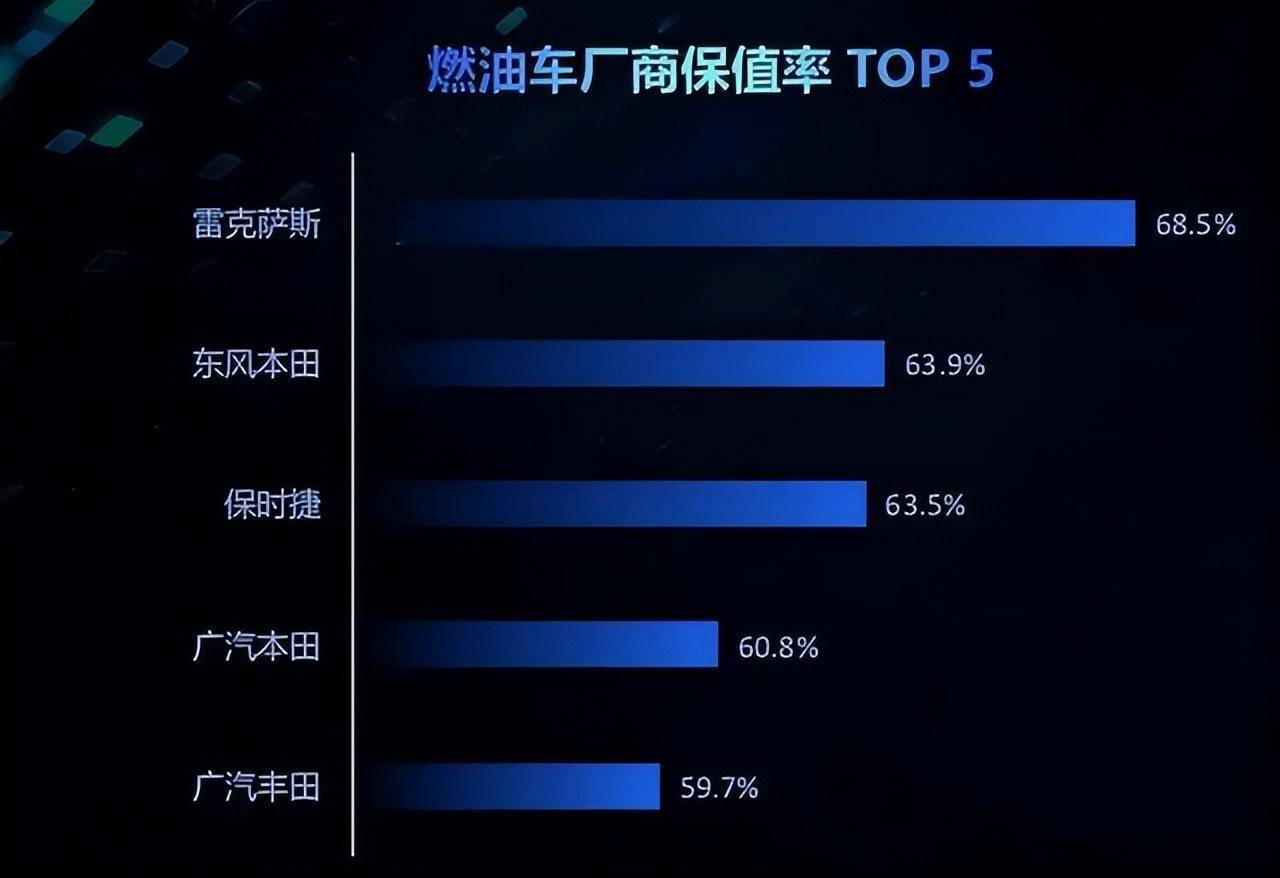 从早前的一份《2022中国汽车保值率研究报告》来看,以三年保值率为标准,保值率第一的雷克萨斯,其三年保值率达到了68.5%。其次是东风本田、保时捷、广汽本田和广汽丰田。