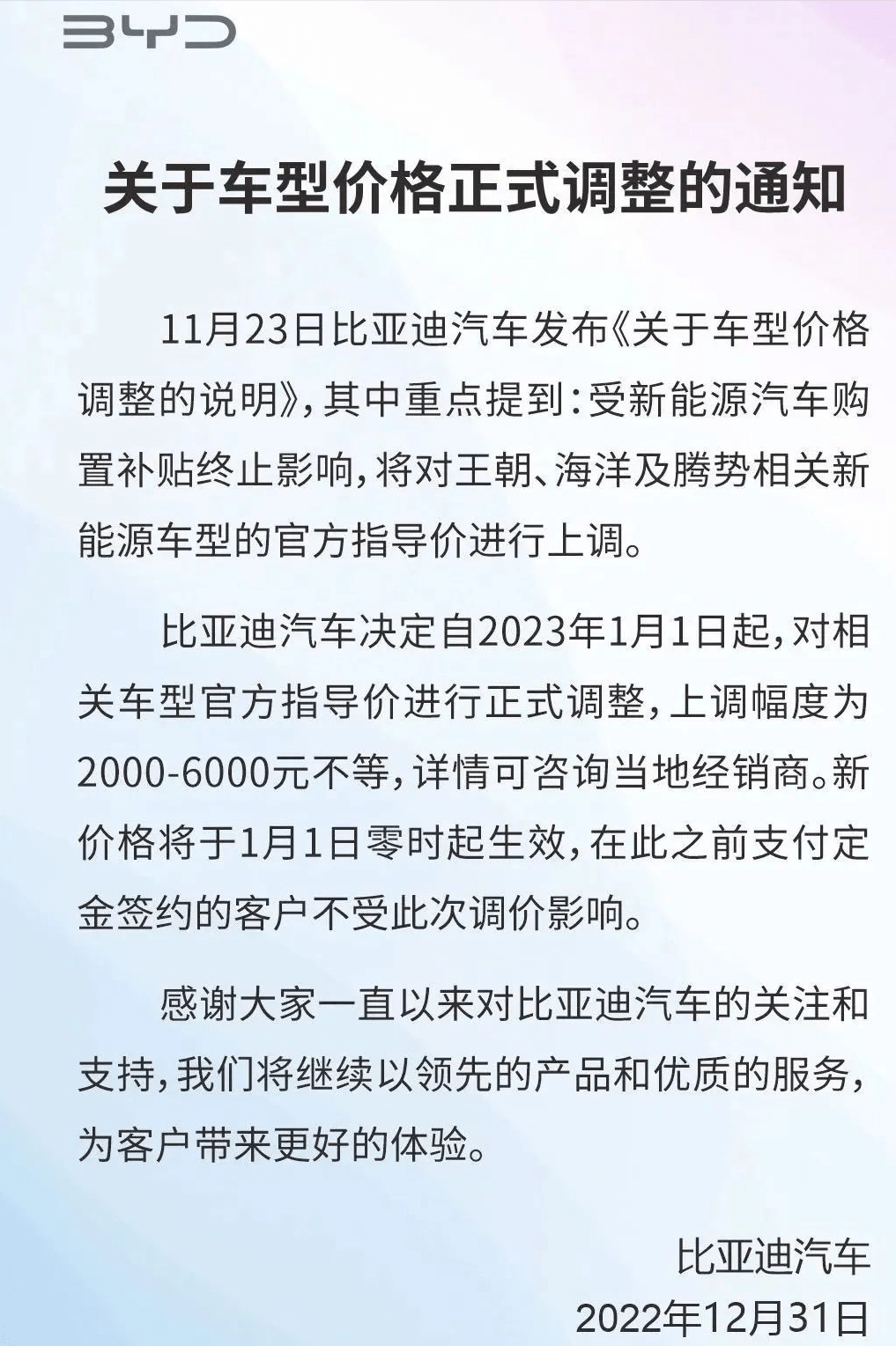 但事实上,同样相反的促销情况会经常发生在国产阵营,比如在2022年12月31日,比亚迪汽车官方微博发布《关于车型价格正式调整的通知》称,比亚迪汽车决定自2023年1月1日起,对相关车型官方指导价进行正式调整,上调幅度为2000元~6000元不等,随后, AITO问界、小鹏汽车、极氪汽车等多个品牌则发布“限时保价”声明,宣告涨价。