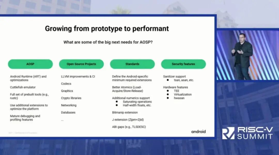 如今官方的表态则加快了 Android 兼容或者转移至 RISC-V 的进程,同时 Google 预计会在 2023 年第一季度推出官方模拟器,让基于 Java 的 Android 程序能在 RISC-V 架构中运行。