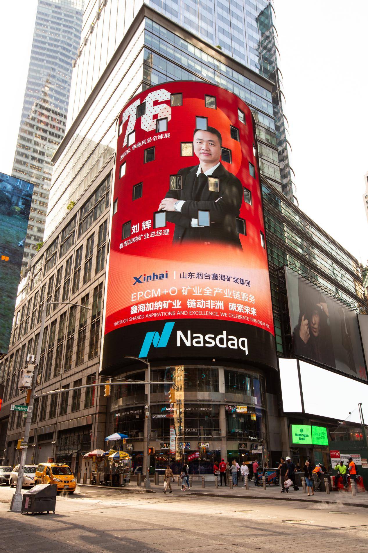 金秋十月,举国同庆。值此共和国成立76周年之际,中国优秀企业(家)代表——山东鑫海矿业技术装备股份有限公司荣幸受邀,亮相美国纽约时报广场举世闻名的纳斯达克证券交易所巨型电子屏。此举旨在向全球展示中国企业的创新活力与发展成就,并于世界舞台中央向伟大祖国献上最诚挚、最热烈的生日祝福,传递中国品牌的自信与声音。
