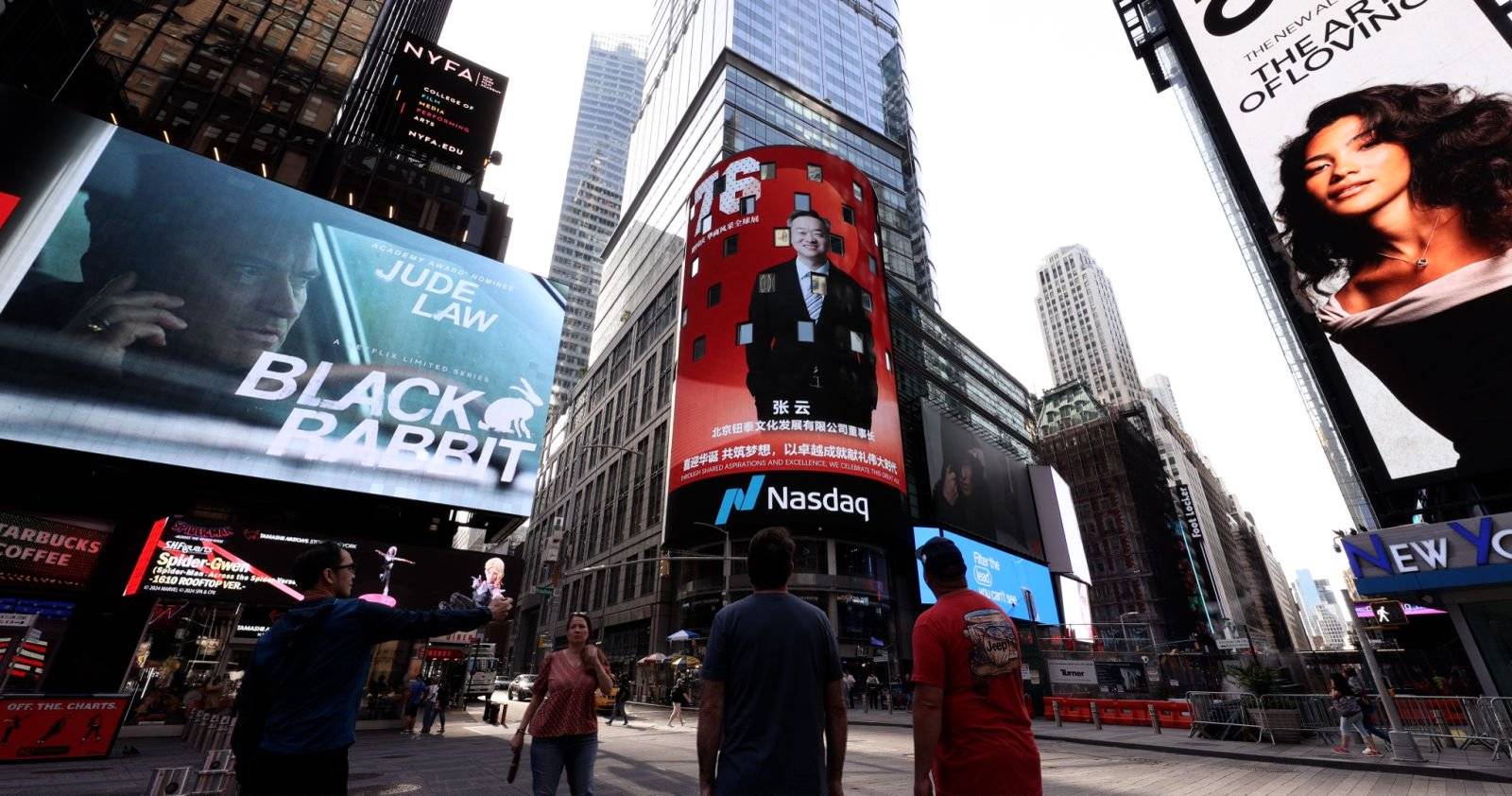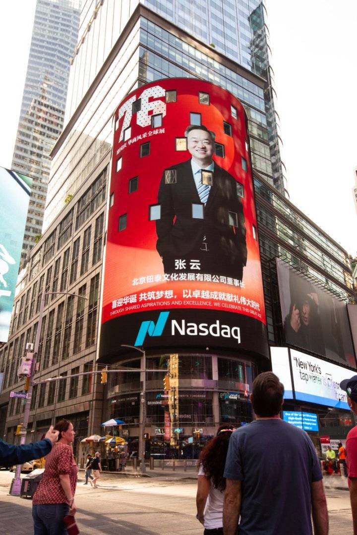 2025年9月29号,在美国纽约时代广场的纳斯达克大屏上,北京钮泰文化发展有限公司董事长张云先生的形象赫然在列,背景是充满节日气氛的红色主题,上面写着“迎国庆 华商风采全球展”。这一画面不仅为国庆佳节增添了喜庆,也向世界展示了中国茶企业家的风采。