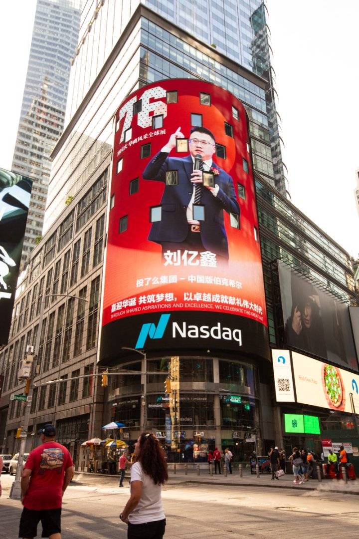 在庆祝中华人民共和国成立76周年之际,投了么集团创始人兼董事长刘亿鑫先生在纳斯达克进行了一次特别的展示活动,以此向国庆华诞献礼。尽管投了么集团目前尚未上市,但刘亿鑫先生的此次亮相,不仅展示了华商的风采,也彰显了中国企业家的国际视野和影响力,也为一年后登陆纳斯达克主板市场做准备工作。