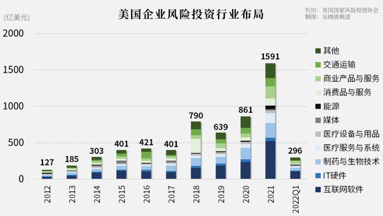 2021年,来自美国企业的风险投资总交易额为1487亿美元,10年间增长了5.5倍。一度占据美国整体风险投资市场的半壁江山。