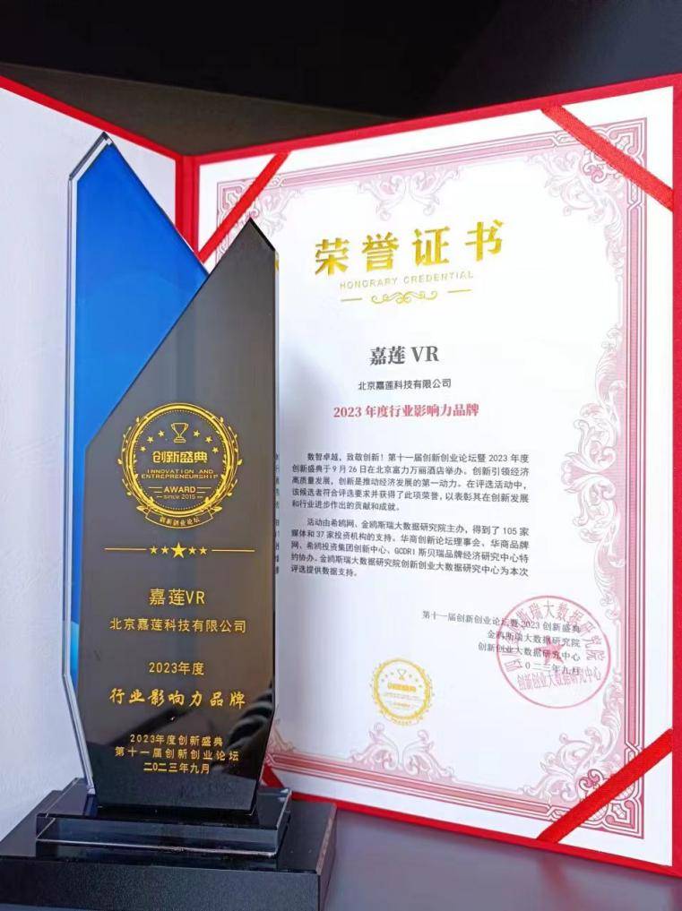 颁发的奖项是对嘉莲VR过去成绩的肯定,也是对嘉莲VR在行业中的卓越地位和领导力的认可。以此次获奖为契机,公司未来将继续引领创新的步伐,不断探索新的领域和商业可能,为客户提供卓越的产品和服务,在挑战中迎接更大的成就。我们对他们取得的辉煌成果感到骄傲,并对他们的未来发展充满了期待。我们共同努力,以创新为发展第一引擎,为推动中国经济高质量发展作出自己贡献!