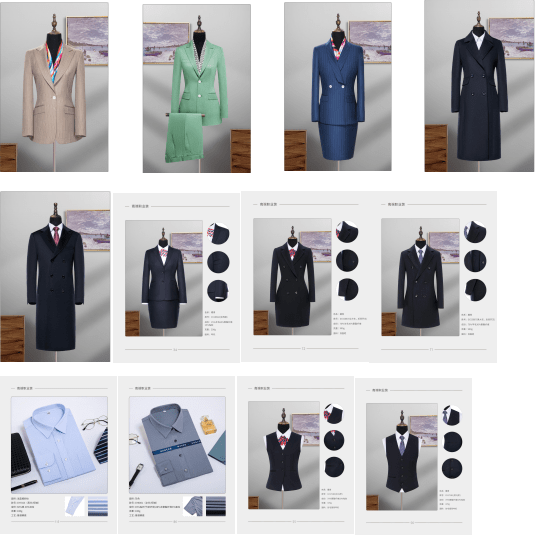 所使用的面料是符合商务职业套装的高频率穿着的品质标准。色牢度,起毛起球,缩水率等严格按照企业要求与制造商积极配合开发。在时尚,功能,耐久性等方面,根据现场考察以及时尚趋势我们将提出相应的面料产品。