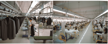 精英徽公司使用的工厂根据国际品质标准进行筛选而得。根据面料种类以及各工厂擅长生产的款式为基准,选择适合的工厂生产。生产期间精英徽建构了独有的管理模式进行管理。还会定期到现场给与技术指导,已保证产品的品质和高效率的对应。