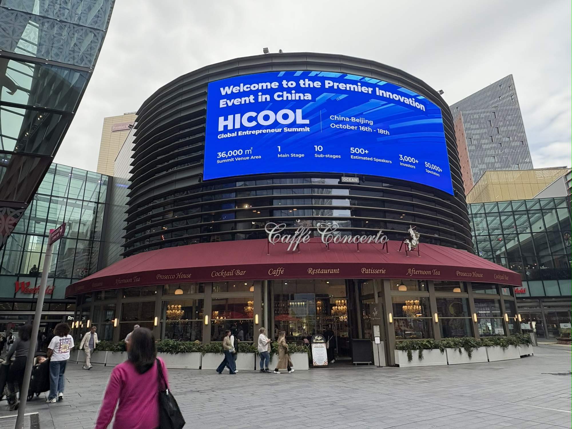HICOOL全球创业者峰会广告宣传登陆英国伦敦Westlifed弧形大屏,希鸥网国际传媒服务案例~