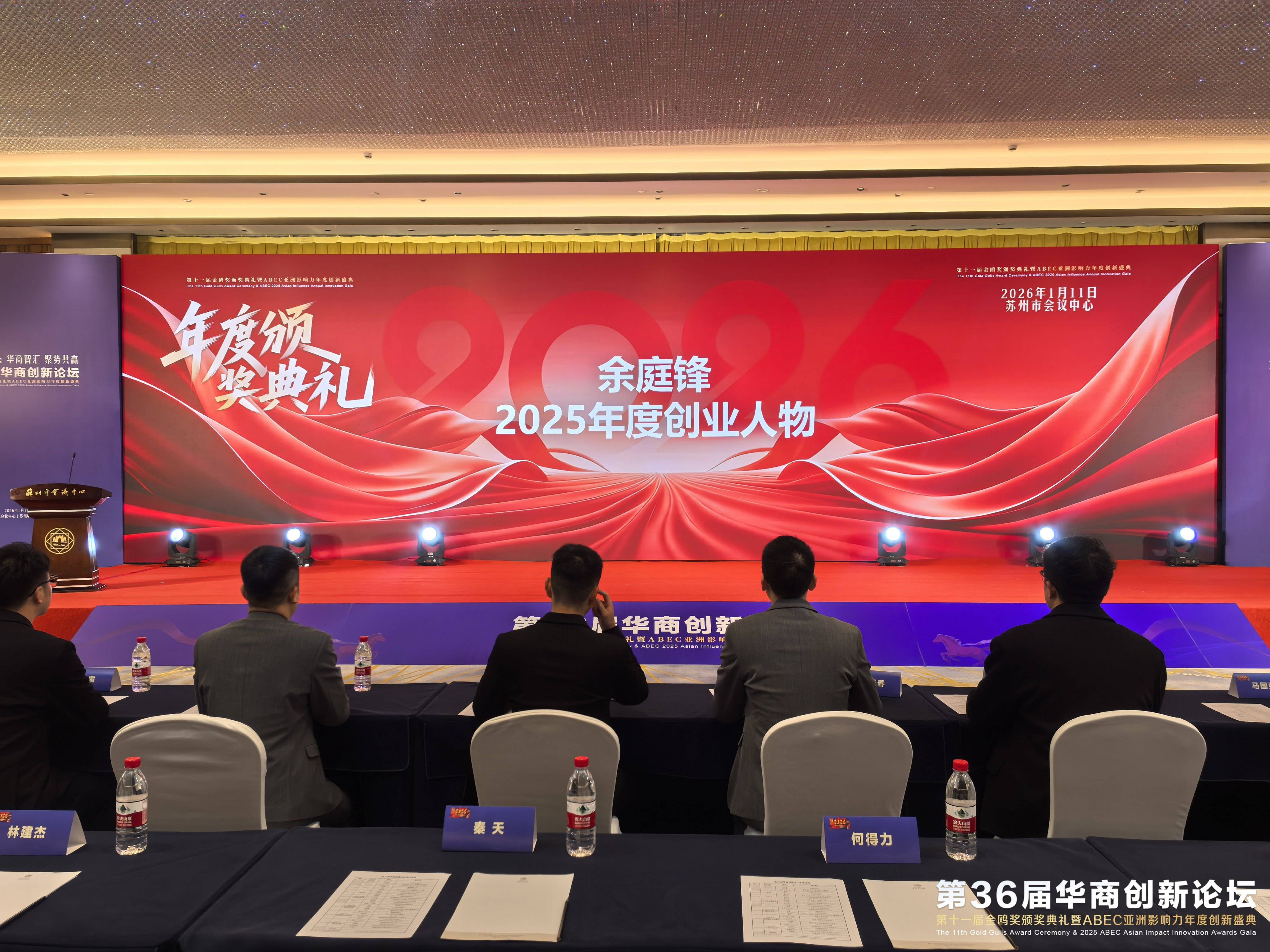 活动上揭晓了"年度金鸥奖"评选结果,其中"余庭锋"获得了"2025年度创业人物"。