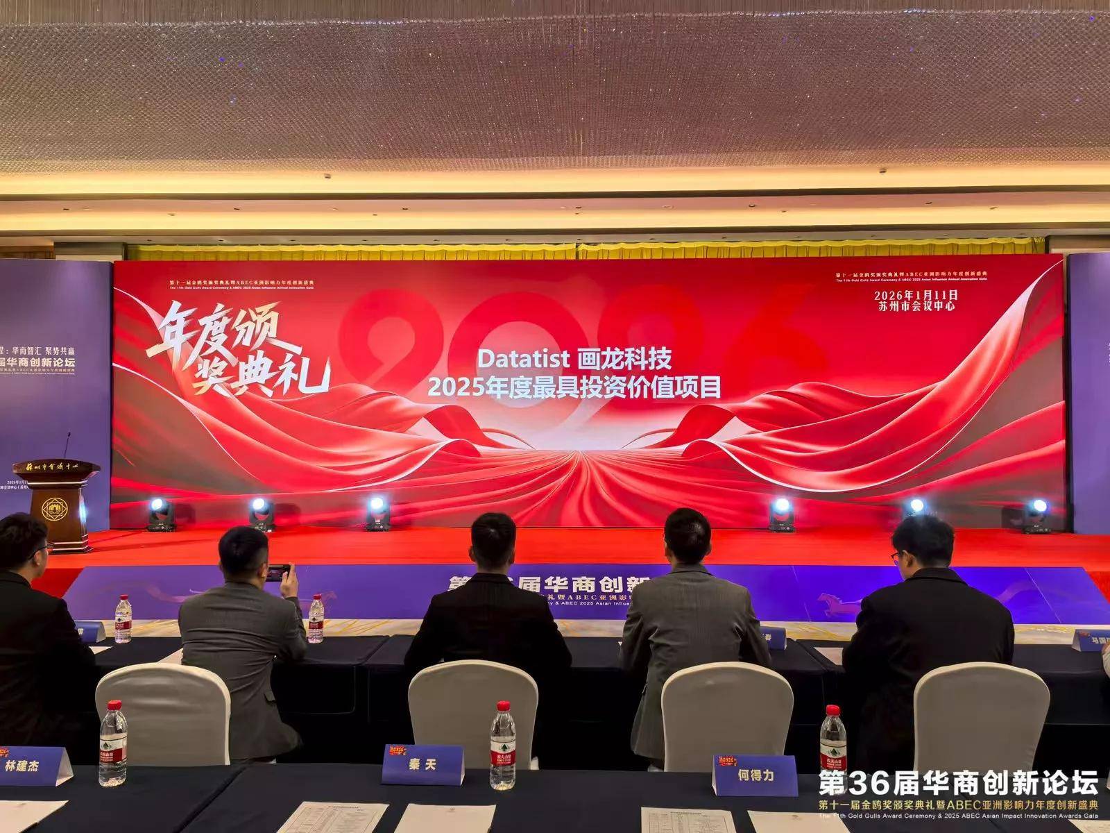 活动上揭晓了“年度金鸥奖”评选结果,其中“Datatist画龙科技”获得了“2025年度最具投资价值项目”。
