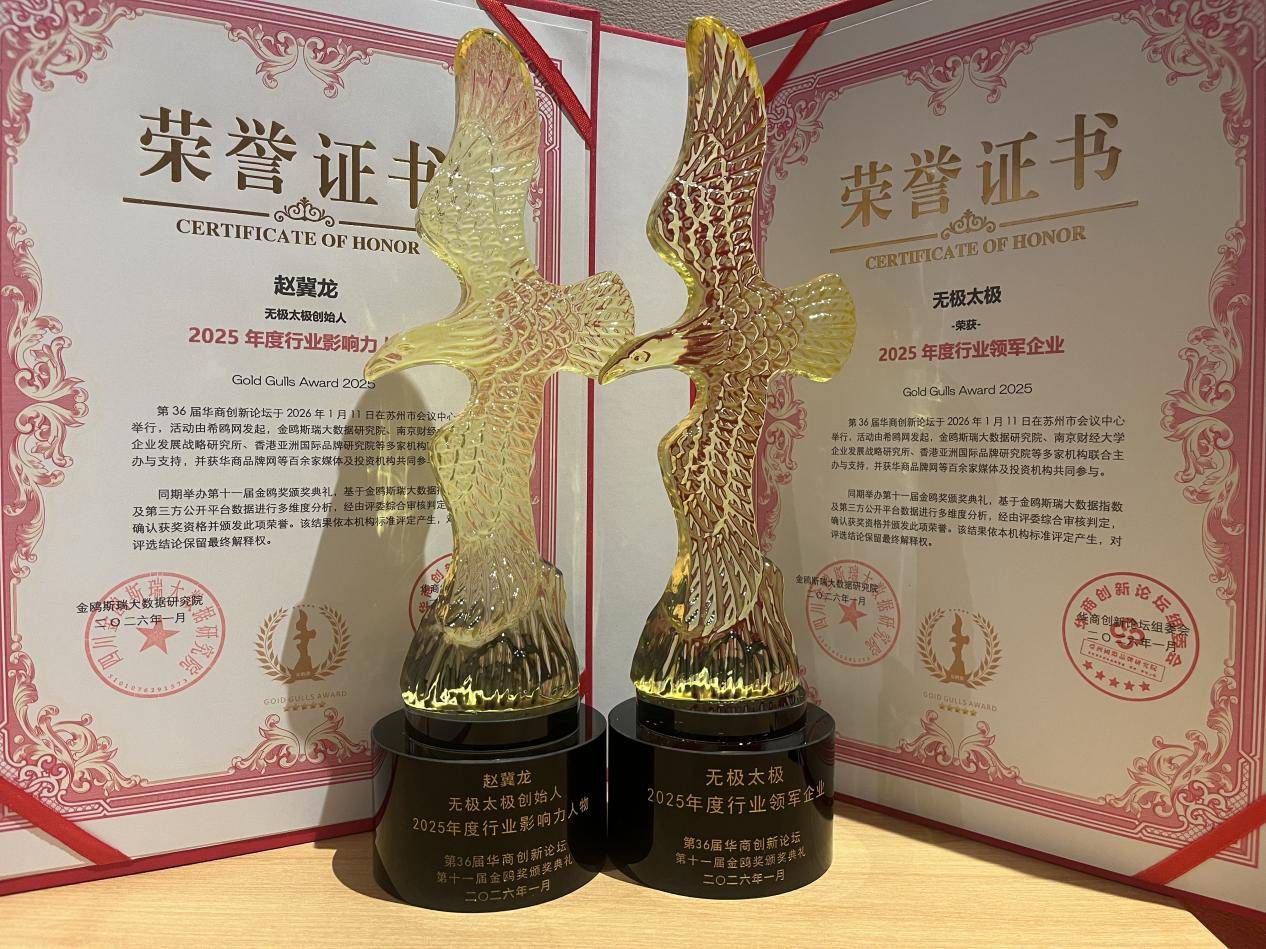 2026 年 1 月 11 日,苏州会议中心内高朋满座,气氛热烈。第三十六届华商创新论坛在此盛大开幕,同期举行的金鸥奖颁奖典礼更是将活动氛围推向了高潮。在众多行业精英中,无极太极凭借其在养生、功夫、疗愈、正念领域的卓越成就与行业引领地位,荣获金鸥奖 2025 年度行业领军企业。这一殊荣不仅是对无极太极多年来深耕行业的肯定,更是对其在全球范围内所做贡献的认可。