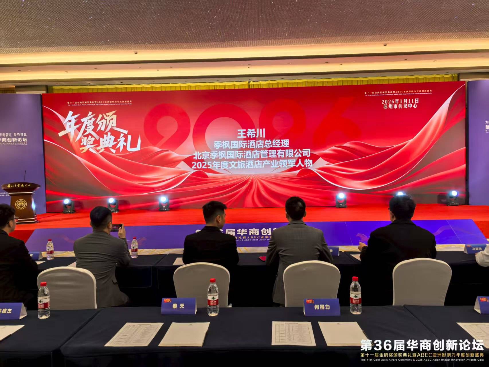 2026年1月11日,由希鸥网发起,南京财经大学企业发展战略研究所、亚洲国际品牌研究院(香港)、金鸥斯瑞大数据研究院、希鸥网创新研究院等机构联合支持的第36届华商创新论坛在江苏省苏州市会议中心成功举办。本届论坛以"起航新征程:华商智汇,聚势向前"为主题,聚焦新时代背景下中国经济高质量发展的核心命题,汇聚了来自全国各地的300余位文旅行业企业家、全球知名酒店集团 酒店权威评选机构专家学者及特邀嘉宾。活动通过主题演讲、权威品牌报告发布、创新案例分享等多种形式,深入探讨了"文旅发展 酒店运营 人工智能+"融合应用、顾客体验 乡村振兴战略实施等前沿议题。