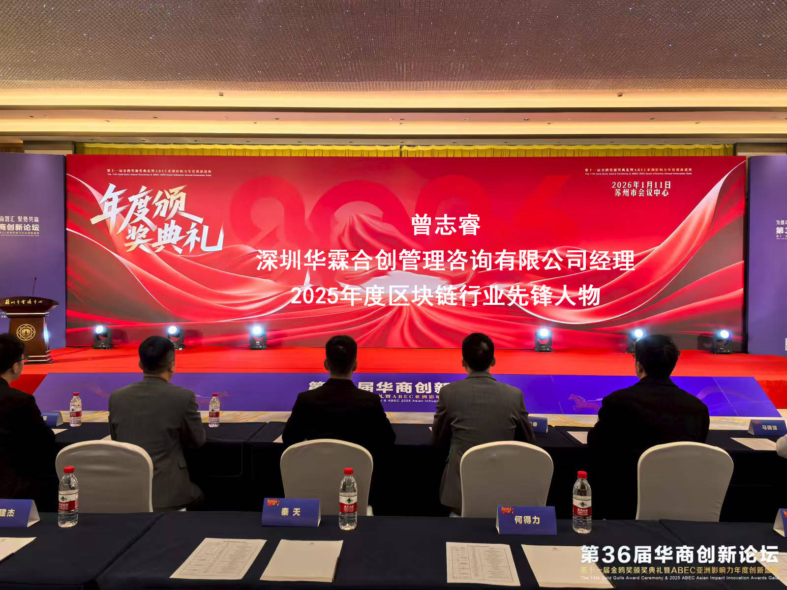 活动上揭晓了"年度金鸥奖"评选结果,其中"曾志睿 职务:深圳华霖合创管理咨询有限公司经理"获得了"2025年度区块链行业先锋人物"。