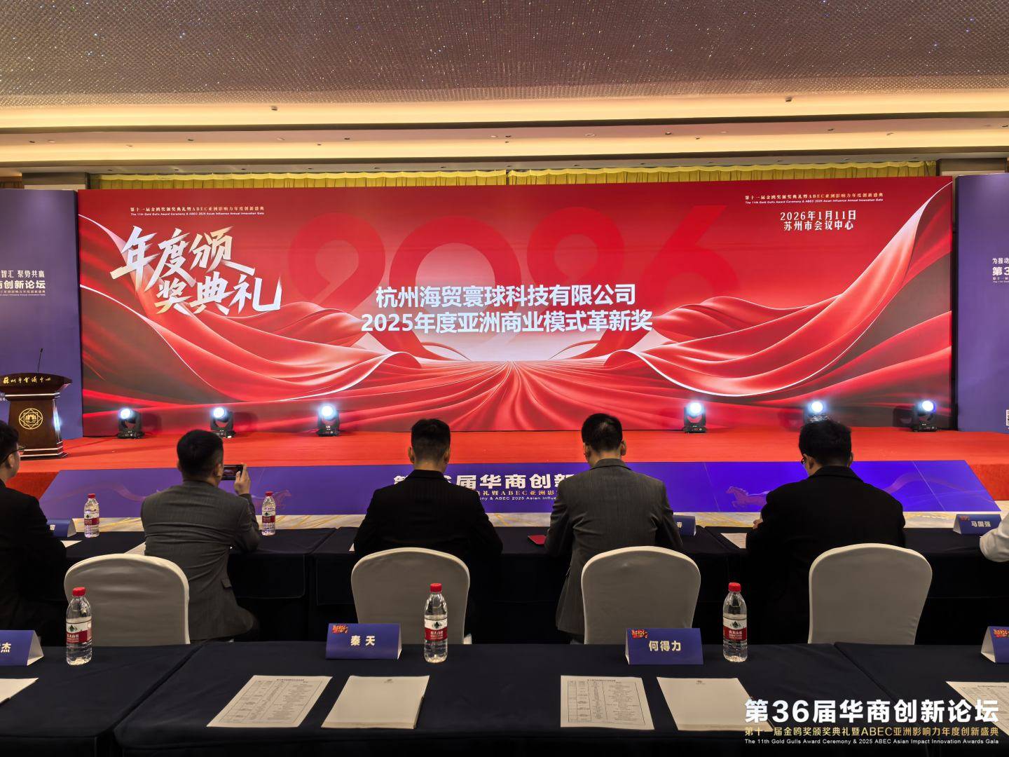 活动上揭晓了"ABEC亚洲影响力创新奖"评选结果,其中"杭州海贸寰球科技有限公司"获得了"2025年度亚洲商业模式革新奖"。