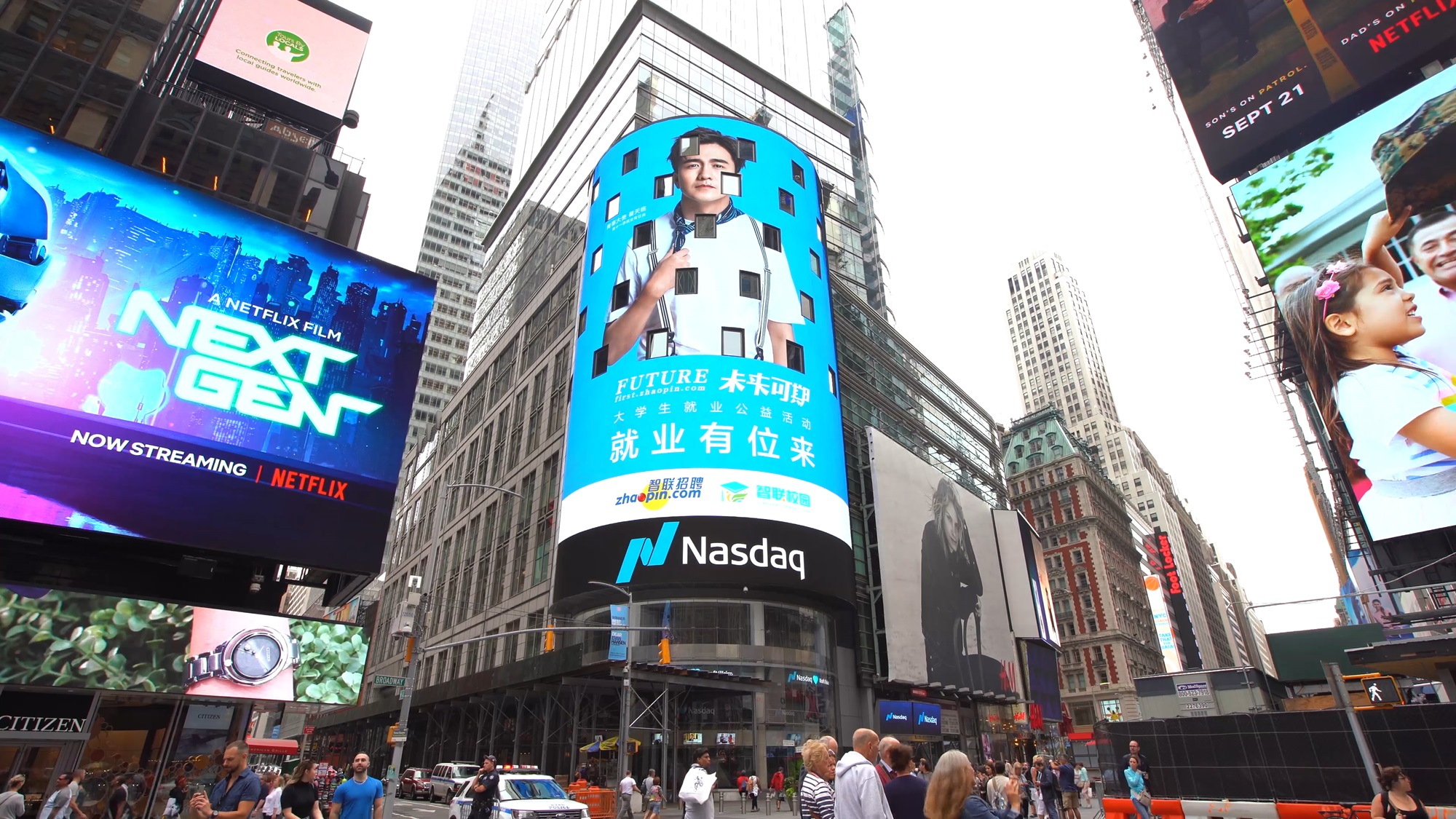 智联招聘相关宣传登陆纽约时报广场纳斯达克大屏