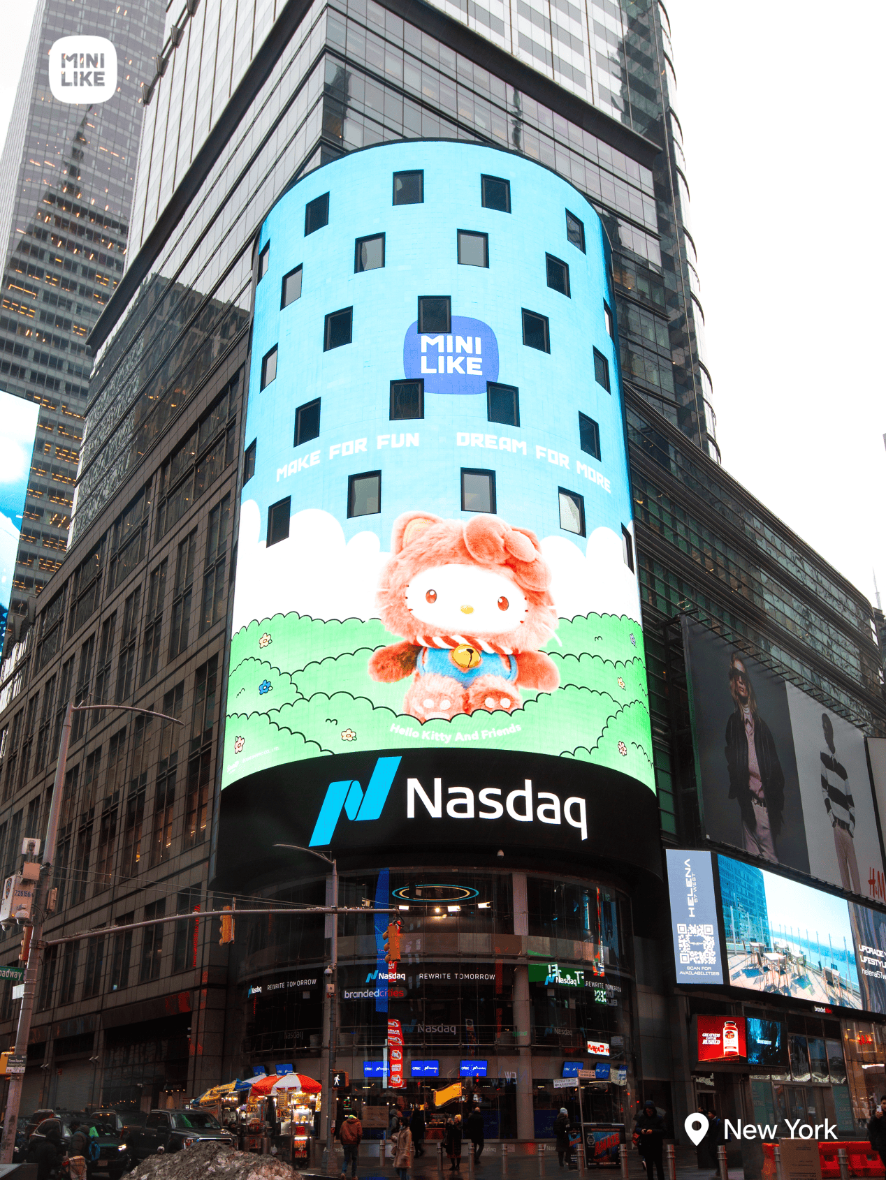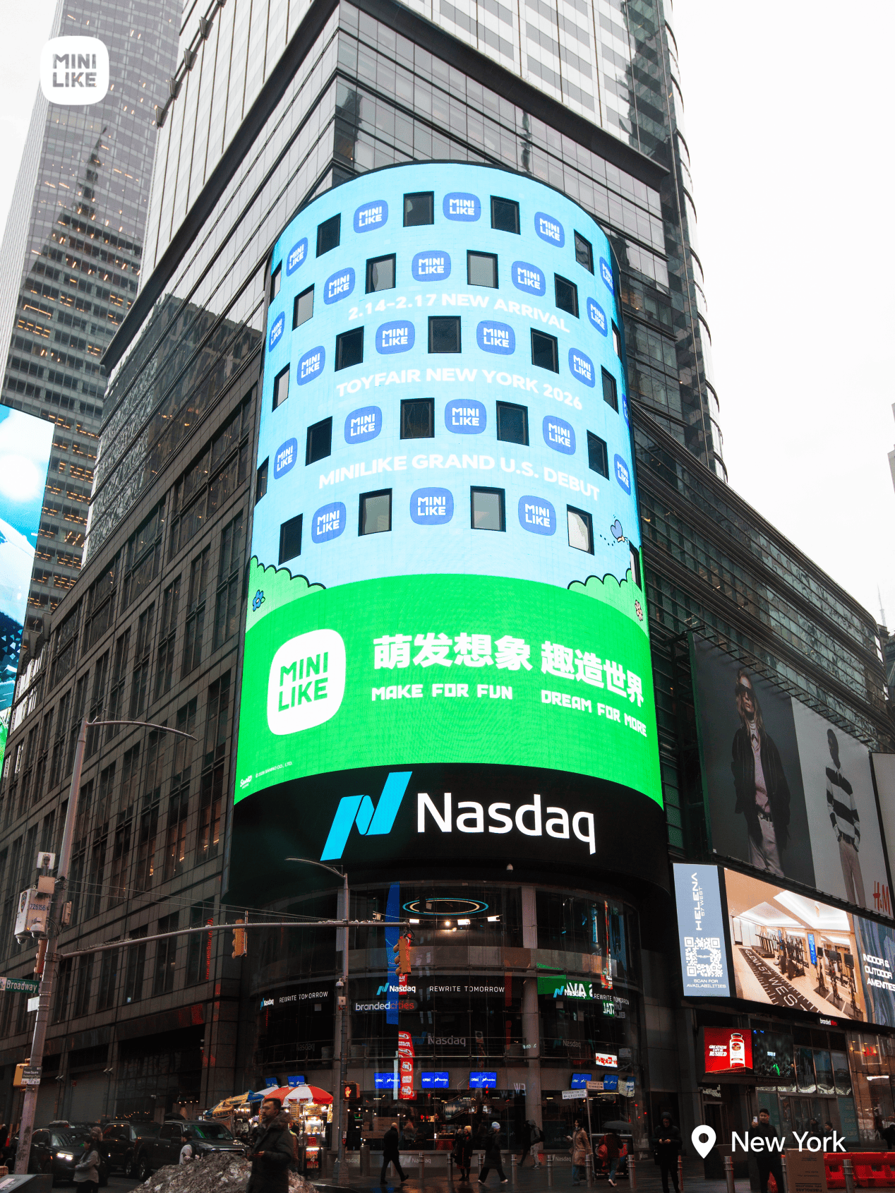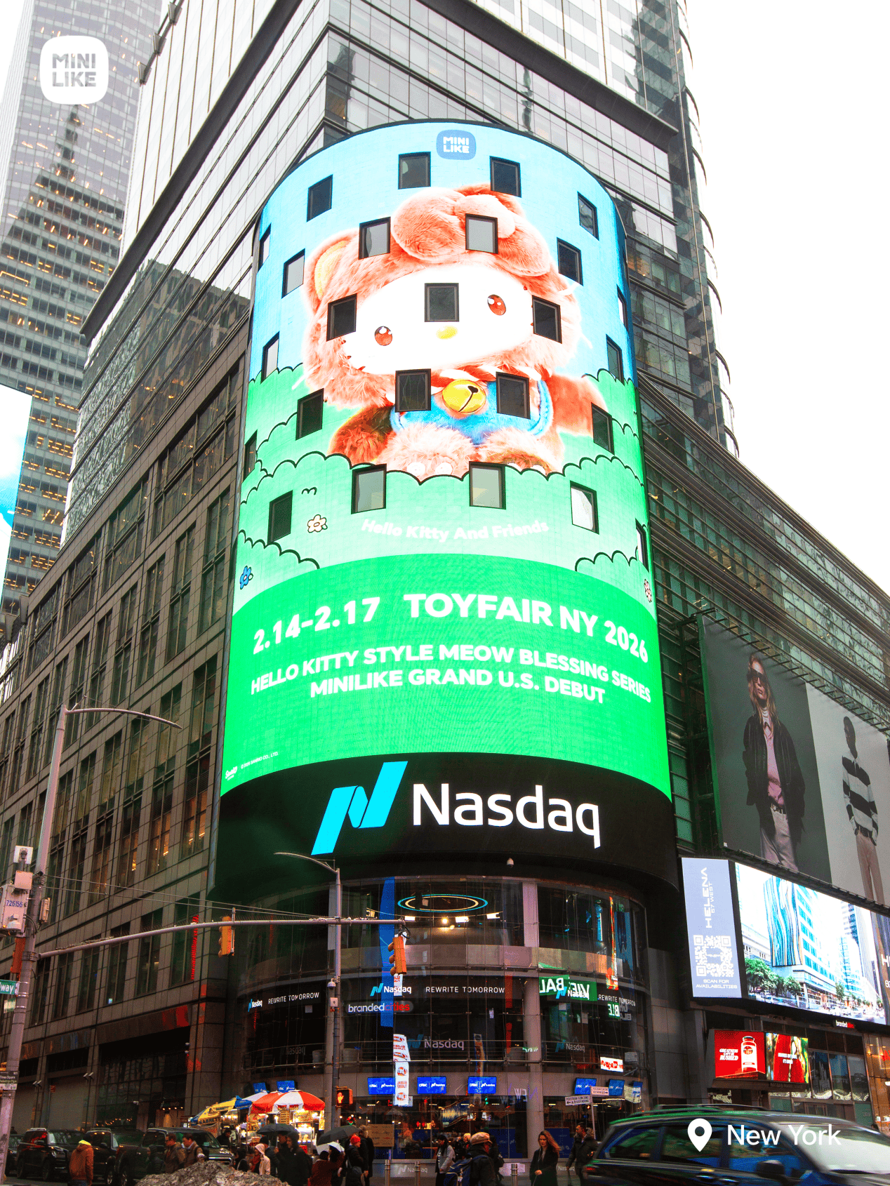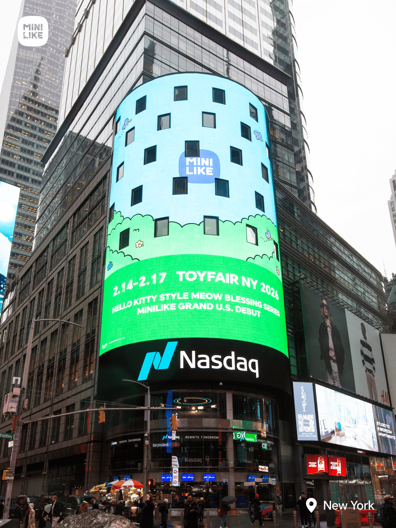 2026年2月14日,国际潮玩品牌「MINILIKE」正式登陆“世界的十字路口”——美国纽约时代广场纳斯达克大屏。此举不仅是品牌面向全球市场的一次高光亮相,更是其全球化战略的关键落子,标志着「MINILIKE」正加速推进与世界主流文化的深度对话与价值融合,将中国潮玩创意推向更广阔的国际舞台。