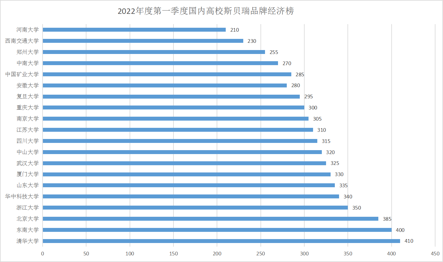近日,斯贝瑞品牌经济研究院发布2022年度第一季度高校品牌经济指数,20所高校上榜,清华大学再次夺冠,仍是各位家长、学子心中的最理想学府。