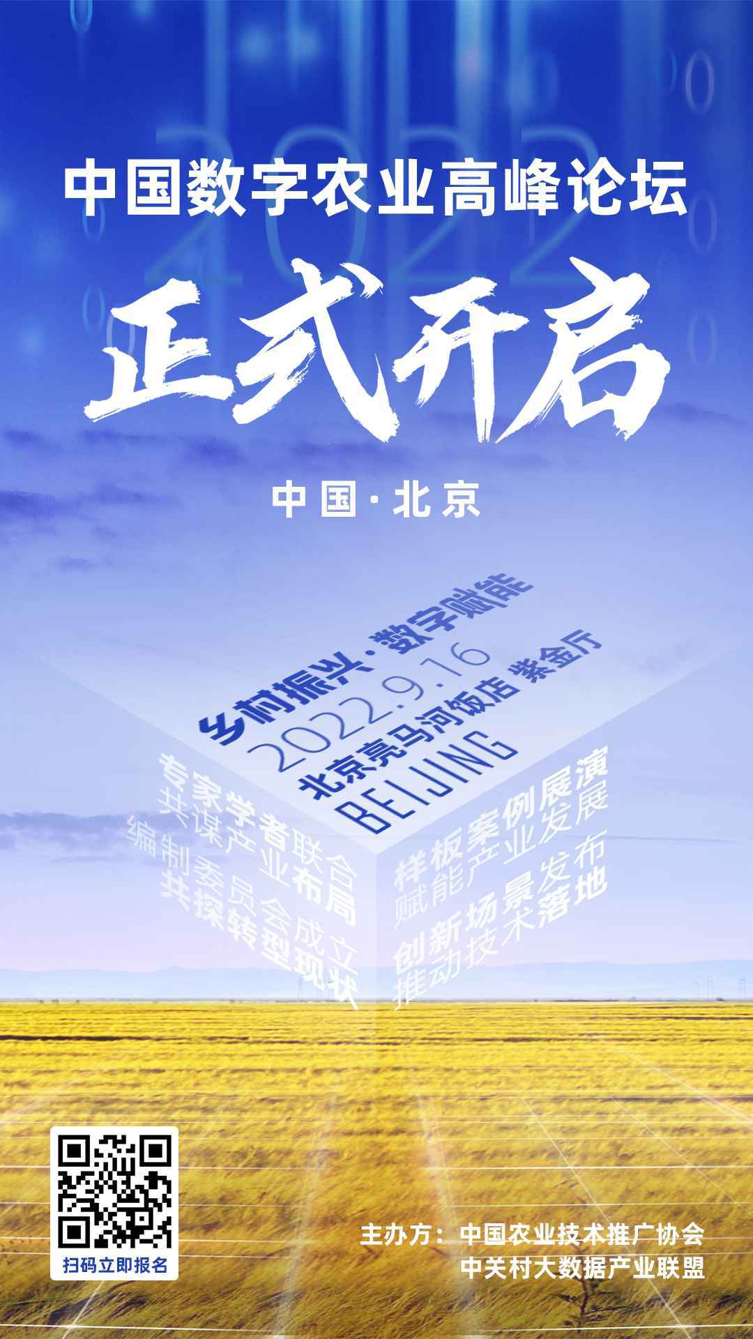 为研讨交流数字农业新技术,推广数字农业新场景,助力乡村振兴战略实施,中国农业技术推广协会拟联合中关村大数据产业联盟将于9月16日在北京亮马河饭店举办2022年中国数字农业高峰论坛。本次活动可通过中国农业技术推广协会或中关村大数据产业联盟公众号报名参加,因疫情防控原因,名额有限,欲报从速。