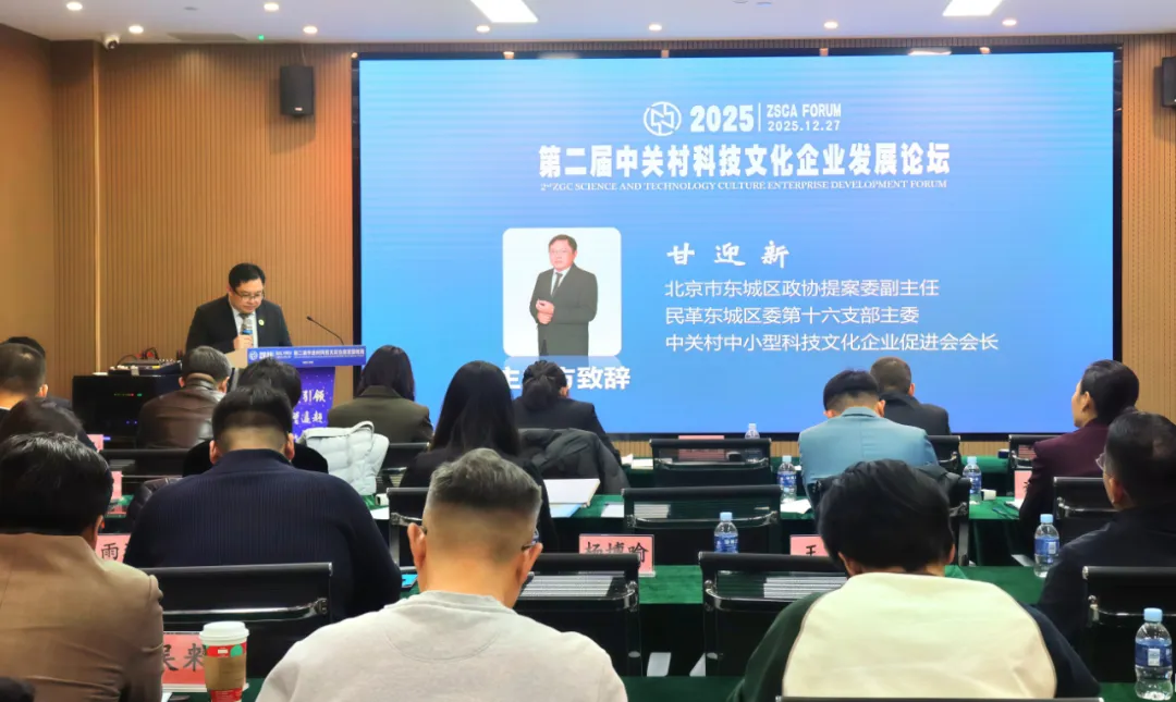 12月27日下午,由中关村中小型科技文化企业促进会主办的第二届“中关村科技文化企业发展论坛”在京成功举办。本次论坛以“融合创新·智启未来——科技赋能文化新业态”为主题。来自政府、学界、产业界及投资界的百余位行业代表出席了活动。会议由华夏智库合伙人吕佩林博士主持。中关村中小型科技文化企业促进会会长甘迎新在论坛开幕致辞中指出,当前文化与科技正步入深度融合的新阶段。本论坛旨在搭建一个贯通国家战略与企业实际需求的跨界融通平台,通过构建服务体系、打造成果展示窗口、对接国内外资源,切实推动“以会兴业、以会促产”,助力广大中小型科技文化企业破解发展瓶颈、把握时代机遇。